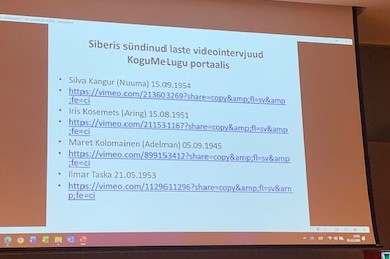 Kuulati ettekandeid: Terje Anepaiorääkis Eesti keele ja kirjasõna kasutamisest Siberis ning eesti keele ja meele hoidmisest küüditatute peredes. Helen Riismaa tutvustas arhiivi andmebaase, nende kasutamisvõimalusi, et oma pere lugu uurida. Andmebaasid asuvad https://www.ra.ee/ , mille kaudu saab siseneda rahvusarhiivi virtuaalsesse uurimissaali.